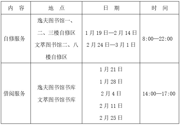 为做好2026年寒假图书借阅等服务保障工作,根据学校《关于放寒假的通知》(宁大办发〔2026〕2号),结合图书馆工作实际,现将图书馆服务工作具体安排通知如下。