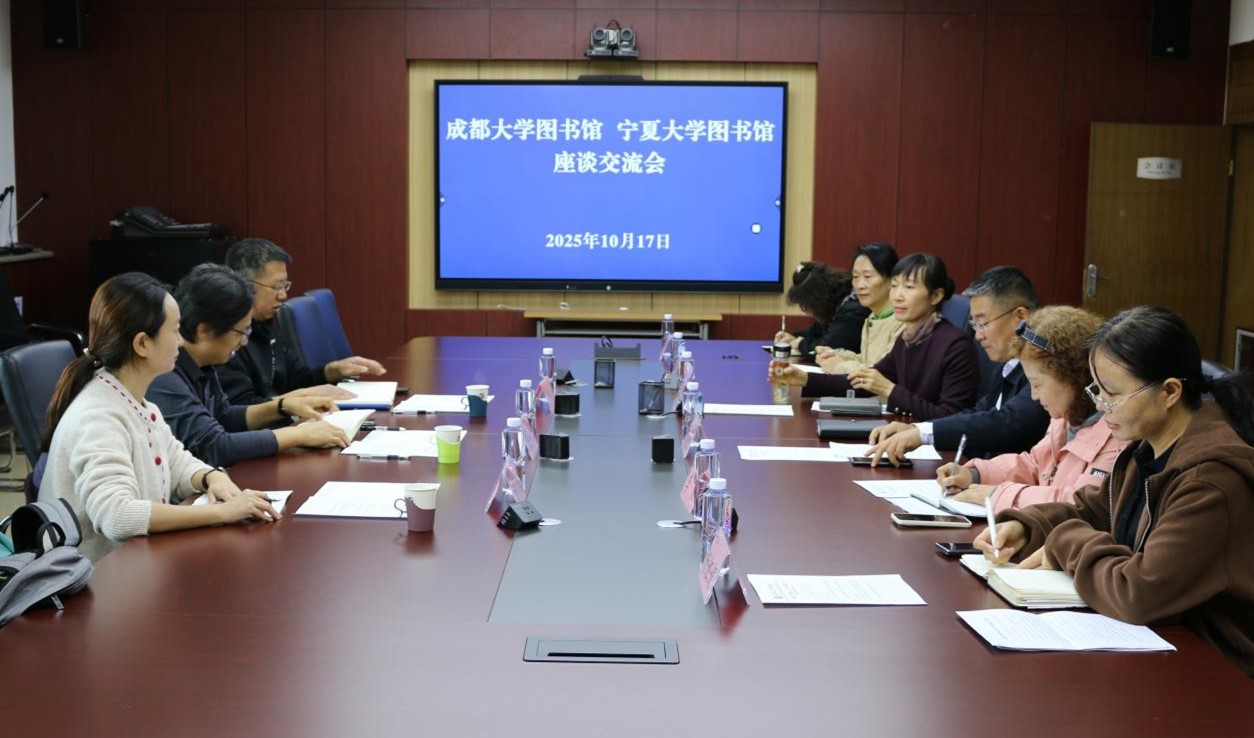 参加座谈会的人员还包括成都大学图书馆副馆长彭长宇、学科服务部主任杨小莉,以及宁夏大学图书馆相关部门负责人。
